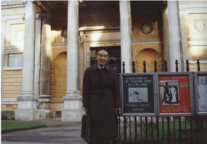 長野県松本市の文化親善使節として、同市の姉妹都市である米国ユタ州ソルトレーク市へ、エドウイン・O・ライシャワー、アメリカ合衆国駐日大使の後援を受け赴き、同市内で大規模な個展を開催、日米親善、文化交流活動を行う。これが画家の海外での活動の端緒であった。最晩年1996年にはパリにアトリエを構え取材、作画活動。